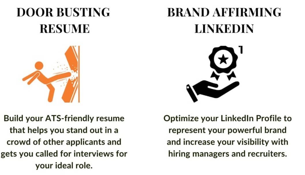 You will have access to build your Door-Busting Resume and Brand-Affirming LinkedIn content for an additional 30 days after the conclusion of the program.